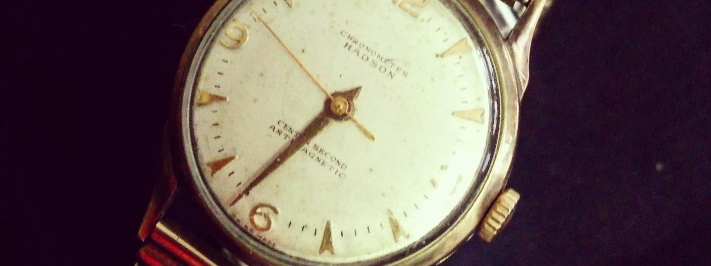 スイスHUDSON社製1950年代アンティーク、14金腕時計。